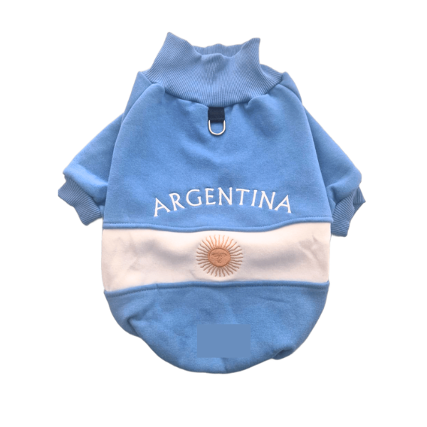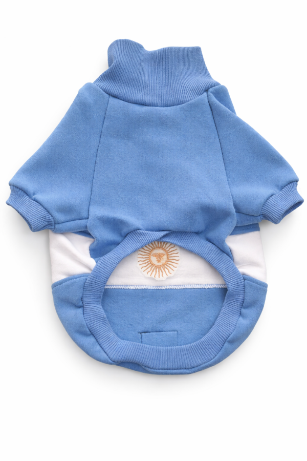 Buzo Scaloneta confeccionado en suave frisa para abrigar bien a tu mascota y alentar a la selección en el mundial de fútbol 2026